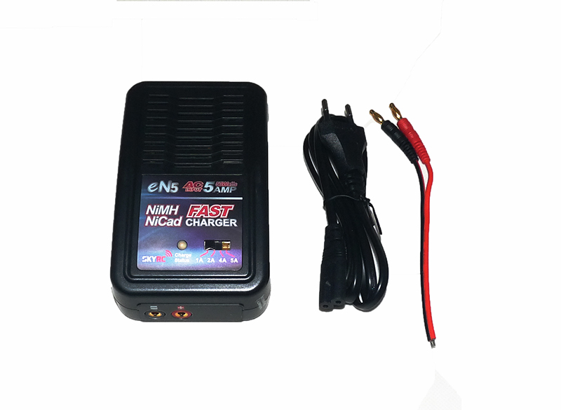 SKYRC eN5 NiMH/NiCd Charger is an economic, high quality 100-240V AC charger, designed for charging NiMH and NiCad batteries from 4-8 cells. The circuit power is 50W and max charge current can reach to 5A. There are four kinds of charge current 1A/2A/4A/5A that can be selected. You could select the proper charge current according to battery capacity.