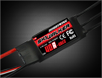Type: SKYWALKER-40A-UBEC · Weight: 43g · Size:68 x25 x12 mm · Constant Current:40A · Max Current: 55A (for ten seconds) · BEC: Yes, 3A / 5V · Input: 2 to 4 Li-Po, or 5 to 12 Ni-MH/Ni-Cd