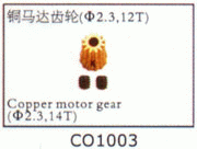 12T/φ2.3 Copper motor gear for SJM400 CO1003