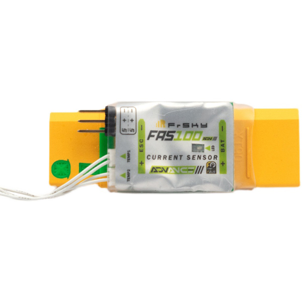 FrSky ADVANCE (ADV) series has comprehensive sensor types and enhanced the performance and capability of the original sensor line, all ADV sensors fully support FBUS protocol and they are also S.Port compatible. With the FBUS protocol, the ADV sensors can be seamlessly paired with the FBUS capable receiver and further simplifying the builds setup.The FAS100 ADV current sensor can be used to measure current (maximum 100A) and voltage (up to 14S) when connected between a battery and ESC.