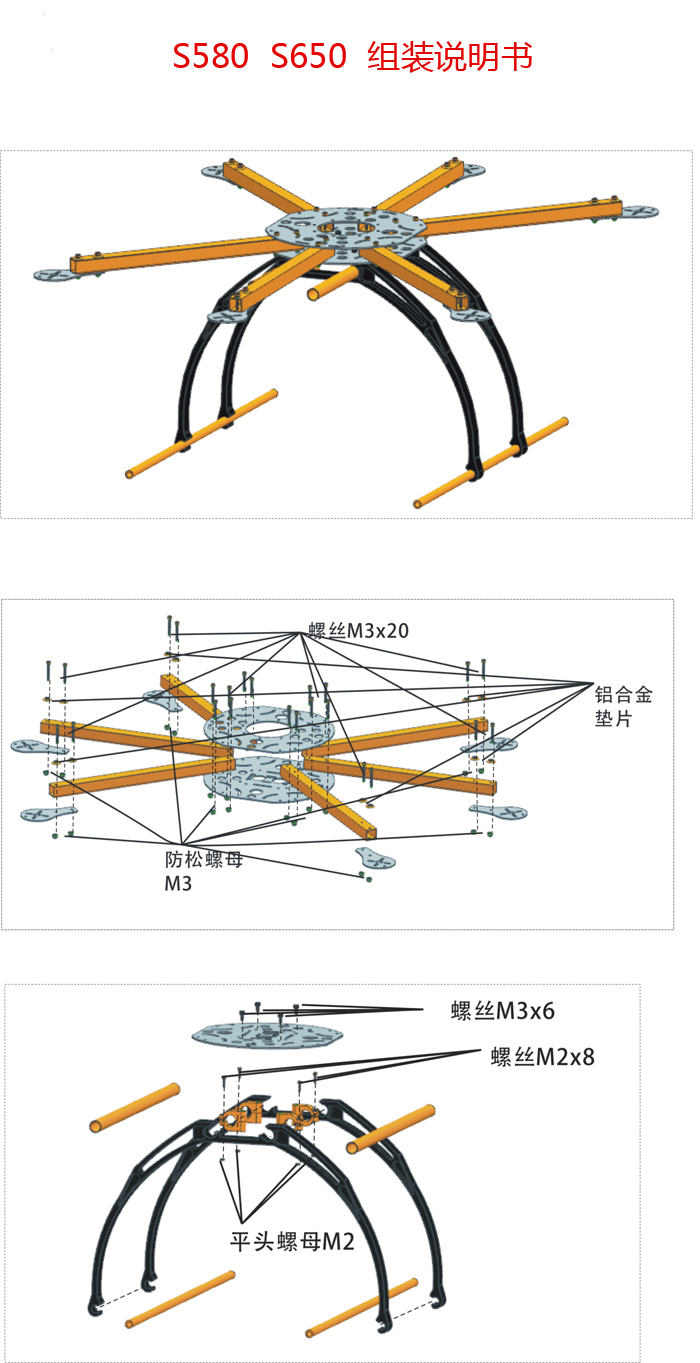 Landing skid type: high landing skid, easy-disassemble design
