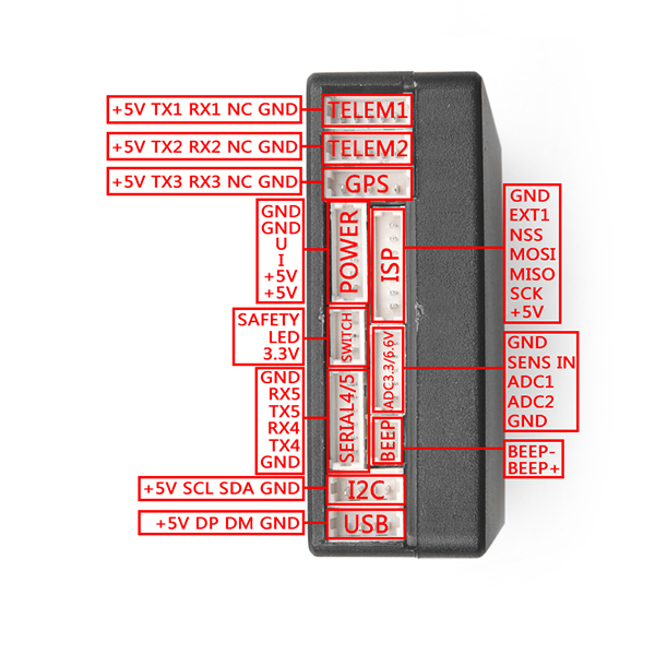 5. Telemetry port (x2) (1.25mm spacing, 5pin JST socket)