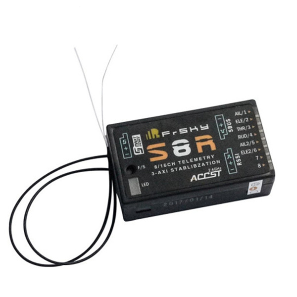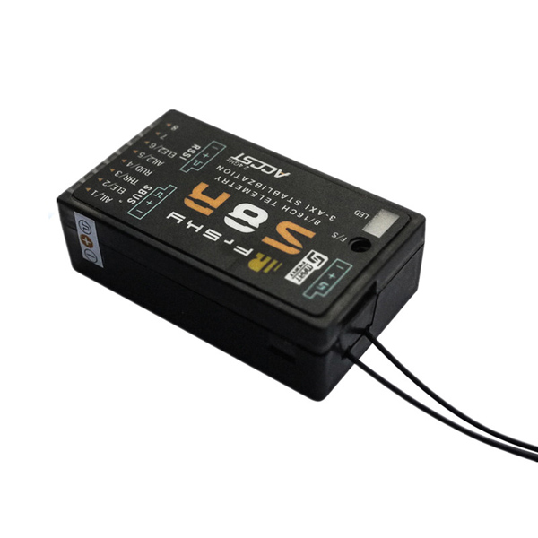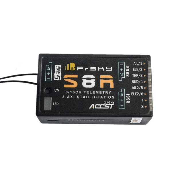 FrSky S8R 8/16 CH Receiver with built-in 3-axis gyro and 3-axis acceleration |
